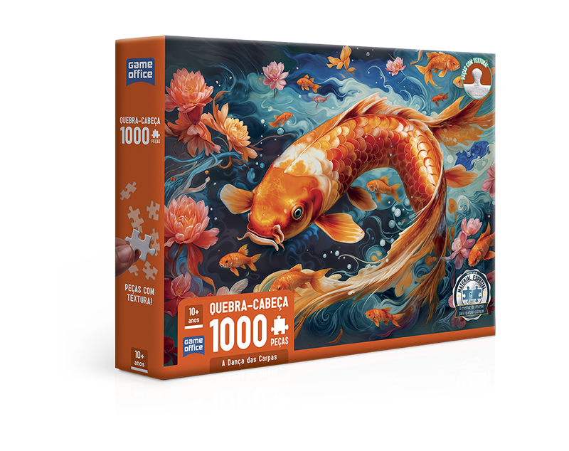 Quebra-cabeça de 1000 peças da linda dança das Carpas, cheio de movimento e beleza! Este quebra-cabeça vem com padrão internacional de qualidade e encaixe suave que pode ser sentido em cada peça!