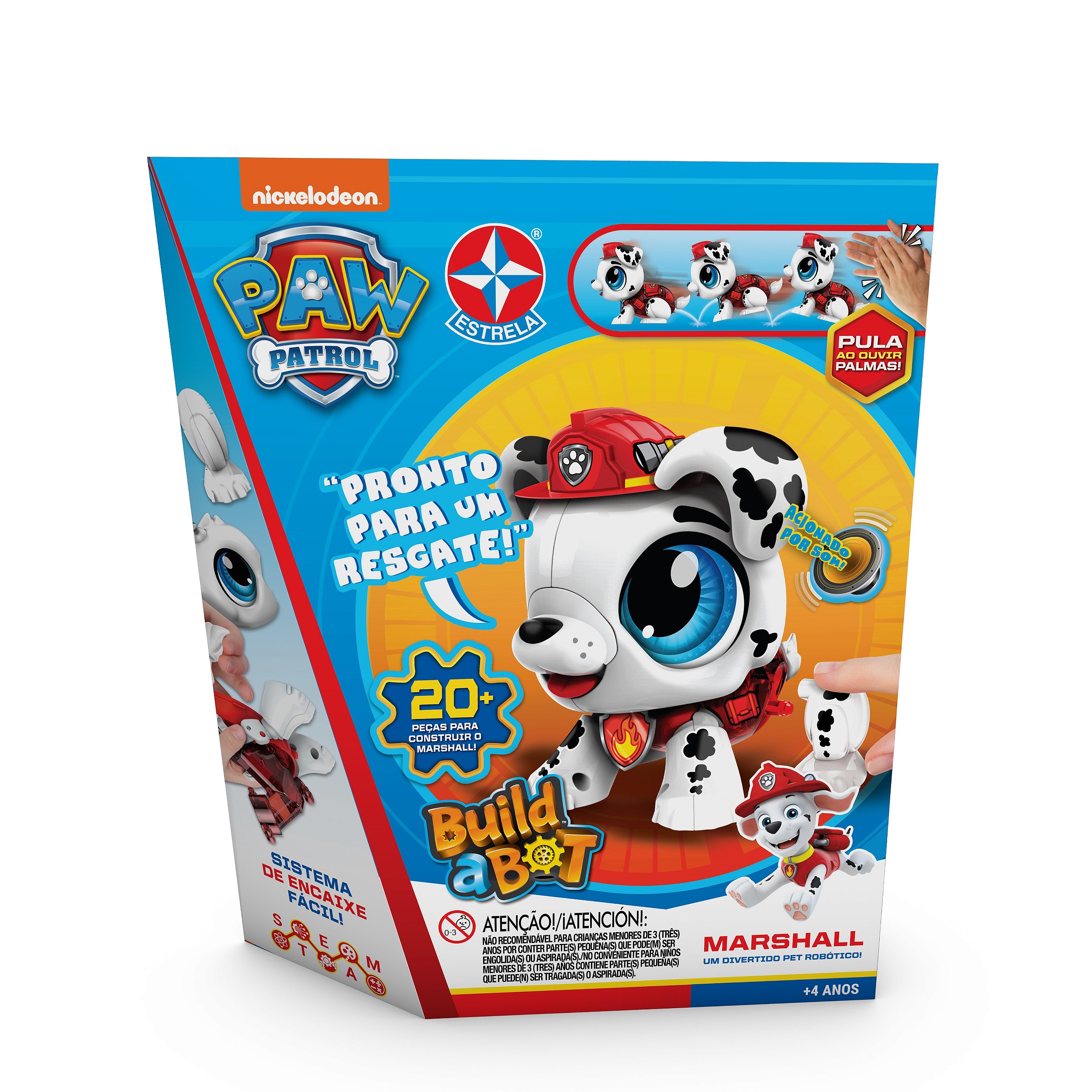 Com muita diversão trazemos a patrulha canina, brinque com o Marshall um dos principais personagens do desenho Patrulha Canina. O cachorro vem desmontado em cerca de 20 peças plásticas e com eletrônica, sendo parte da importante da brincadeira montar o seu amigo robô. Quando montado, ele obedece movimentos acionados por palmas ou por toques no rabinho, falando frases icônicas de seu personagem e pulando! O brinquedo também é customizavel, vindo com uma cartela de adesivos para a criança decorar como quiser.