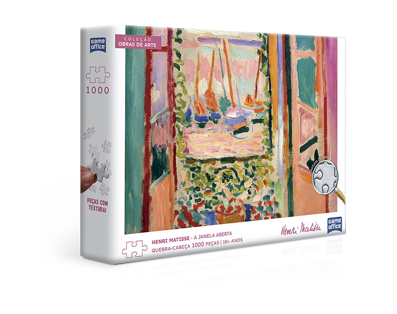 Contemple a delicadeza da luz e das cores com este quebra-cabeça de 1000 peças da obra "A Janela", de Henri Matisse. Este quebra-cabeça vem com padrão internacional de qualidade e encaixe suave que pode ser sentido em cada peça!