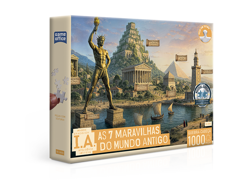 Inteligências artificiais são aprimoradas constantemente, e são uma forma divertida de gerar resultados inusitados, abrindo a todos um novo universo! Embarque em uma jornada épica montando este impressionante quebra-cabeça de 1000 peças das 7 Maravilhas do Mundo Antigo! Este quebra-cabeça vem com padrão internacional de qualidade e encaixe suave que pode ser sentido em cada peça!