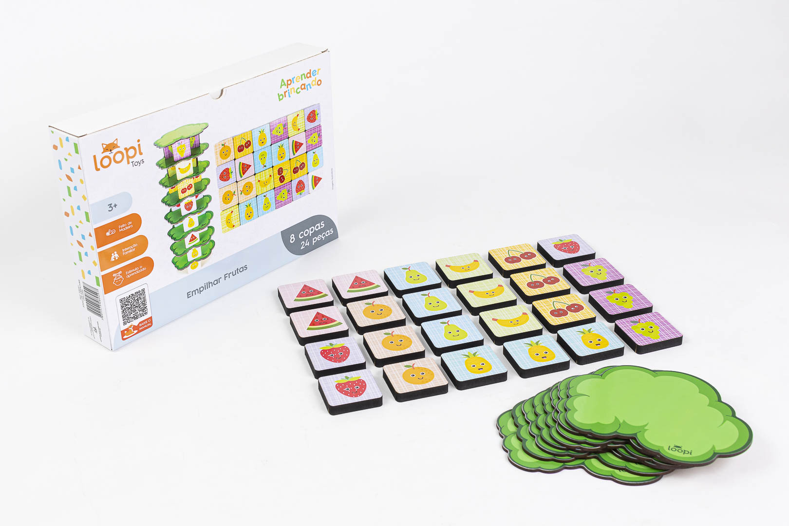 Descubra o Jogo de Empilhar Frutas, o brinquedo educativo ideal para crianças a partir de 3 anos que alia diversão e desenvolvimento cognitivo. Com 24 peças coloridas e ilustradas com frutas simpáticas, este jogo estimula a coordenação motora, reconhecimento de formas e cores, além de incentivar o raciocínio lógico.