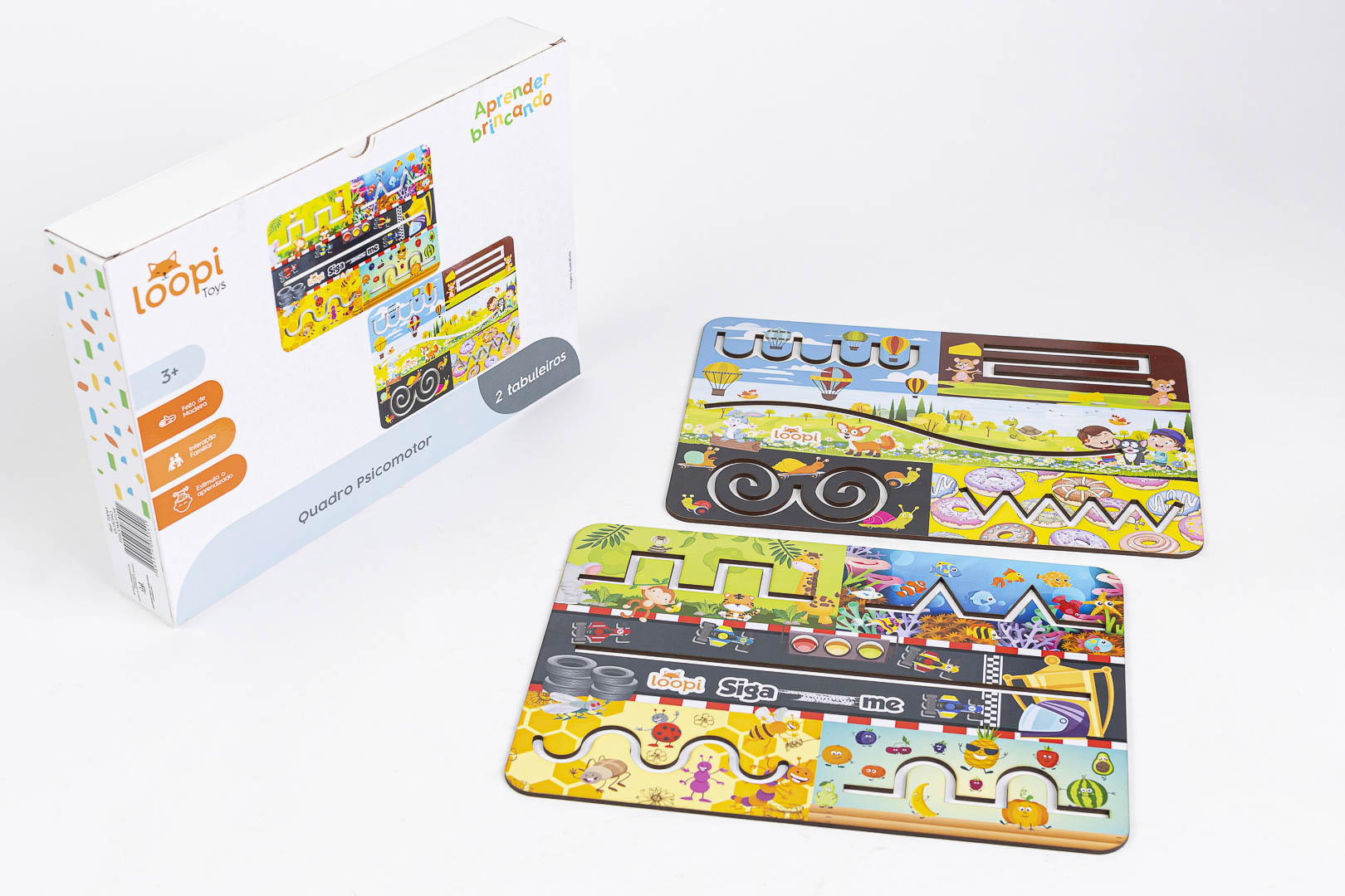 O Quadro Psicomotor é o brinquedo ideal para estimular o desenvolvimento motor e cognitivo das crianças a partir de 3 anos. Com dois tabuleiros coloridos e ilustrados, oferece diversas trilhas e desafios que aprimoram a coordenação motora fina, o raciocínio lógico e a concentração. Feito em MDF resistente e seguro, proporciona horas de diversão educativa, tornando o aprendizado natural e envolvente.