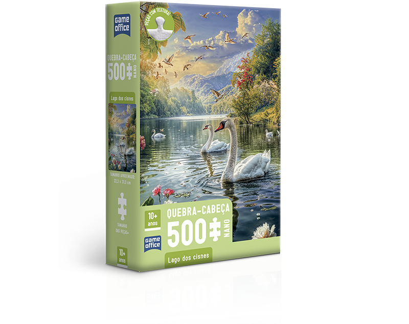 Quebra-cabeça de 500 peças com uma paisagem clássica de Lago de cisnes! Este quebra-cabeça vem com padrão internacional de qualidade e encaixe suave que pode ser sentido em cada peça!