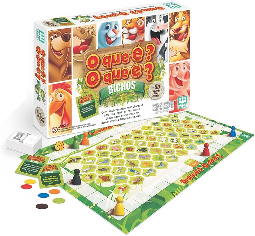 Parece fácil encontrar um animal em um tabuleiro com 69 figuras? Neste jogo super divertido a criança ainda terá que responder as charadas e ser rápido para procurar o animal e marcar sua conquista.